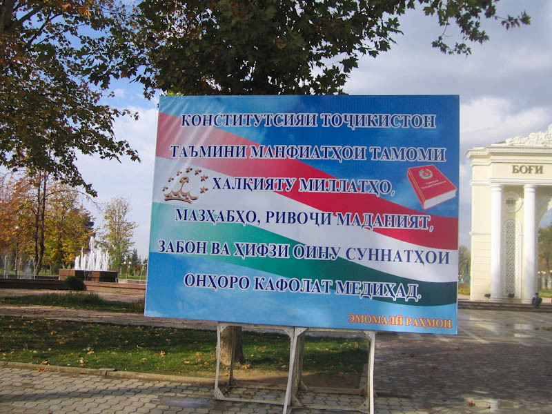 Первые три дня посмотреть город мне удавалось только из окна предоставленной машины. На улице хоть и +24С но все таки ноябрь и рано темнеет.Спасибо водителю, который каждый раз старался ездить разными дорогами, чтобы показать мне город. Первое что бросилось в глаза конечно отсутствие пробок как таковых в нашем понимании этой проблемы. Ну во-первых машин не так много, а во-вторых город относительно молодой и улицы проектировали советские градостроители толково. И вот на четвертый день случился в республике всенародный праздник - День Конституции Республики Таджикистан. Еще не привыкнув толком к географическому времени, я вышел пораньше и отправился на прогулку по центру.